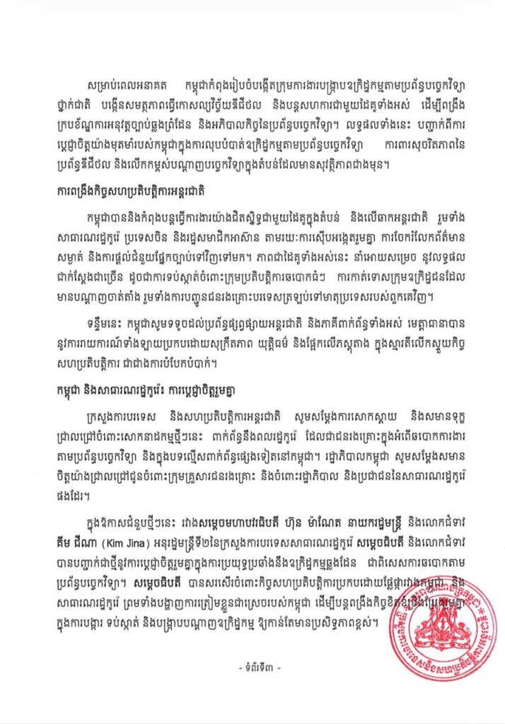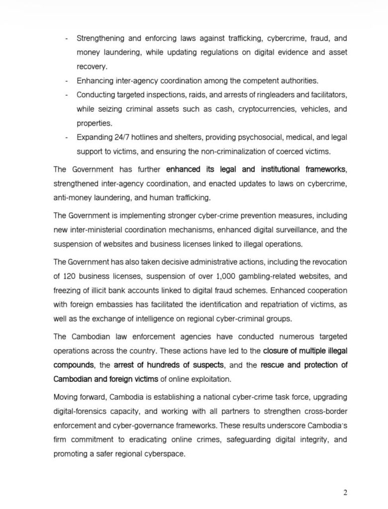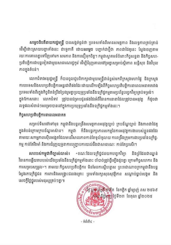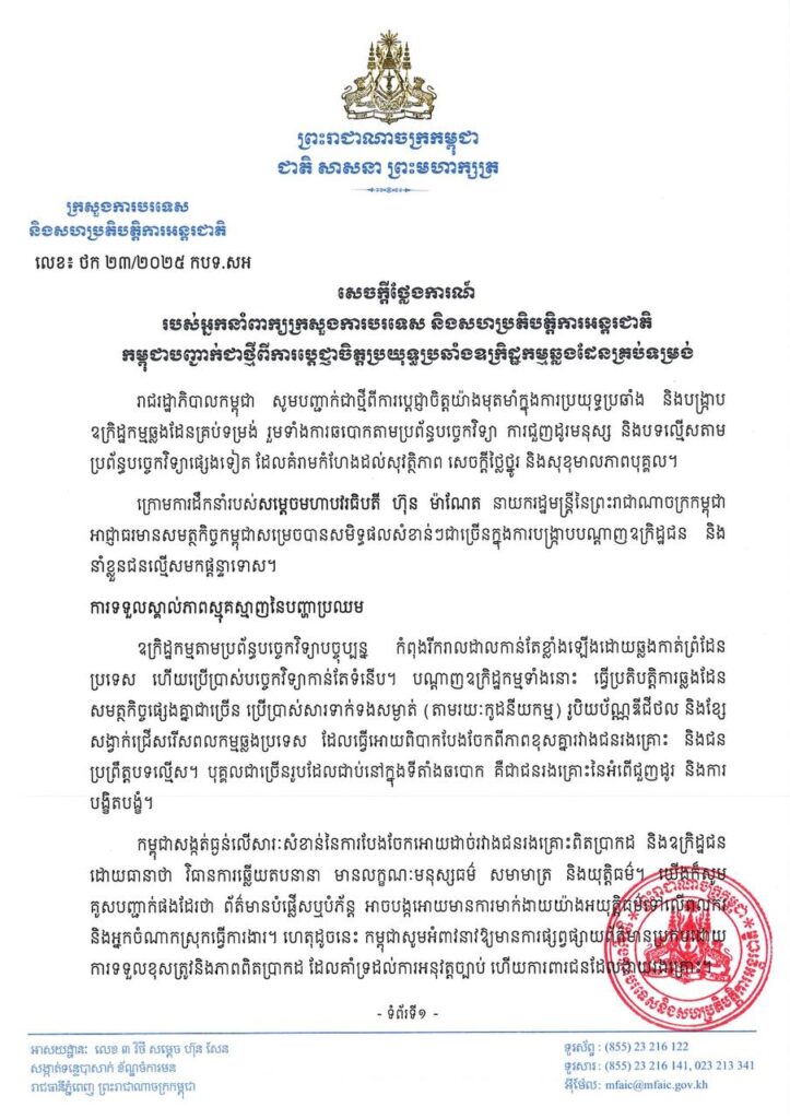 កម្ពុជាបញ្ជាក់ជាថ្មីពីការប្តេជ្ញាចិត្តប្រយុទ្ធប្រឆាំង ឧក្រិដ្ឋកម្មឆ្លងដែនគ្រប់ទម្រង់