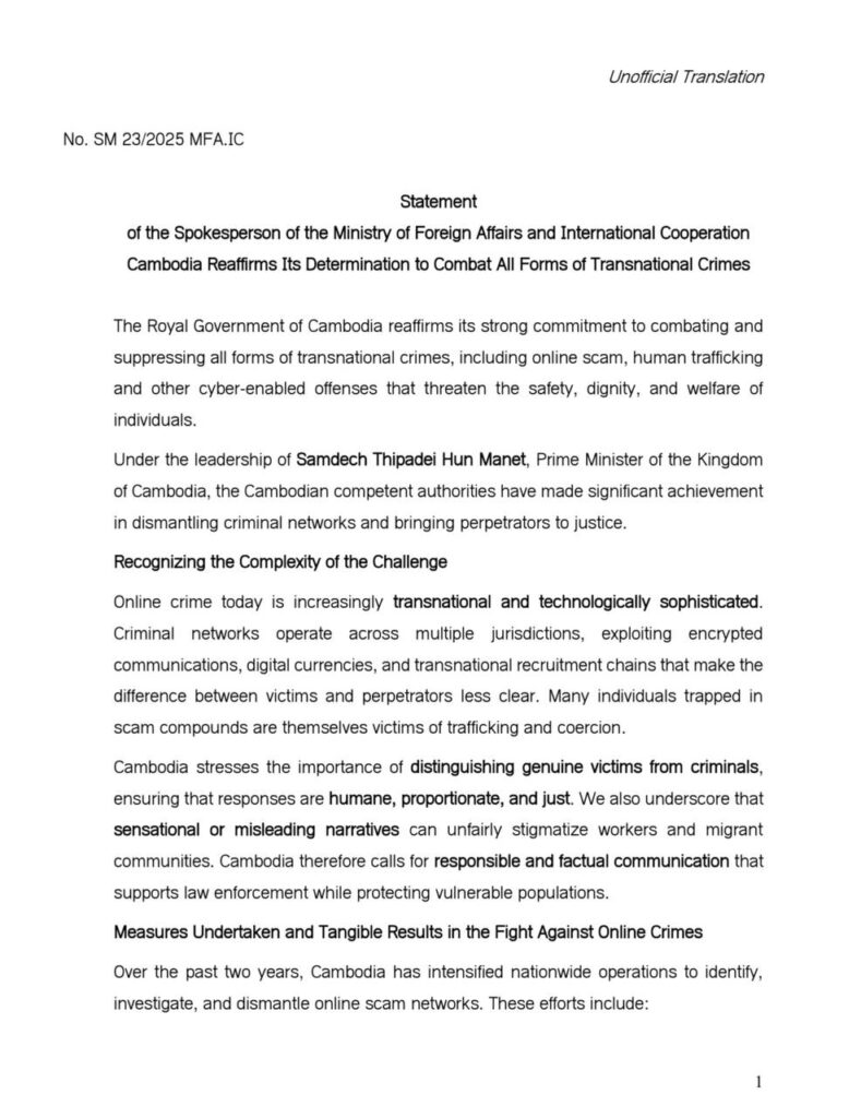 Cambodia Reaffirms Its Determination to Combat All Forms of Transnational Crimes