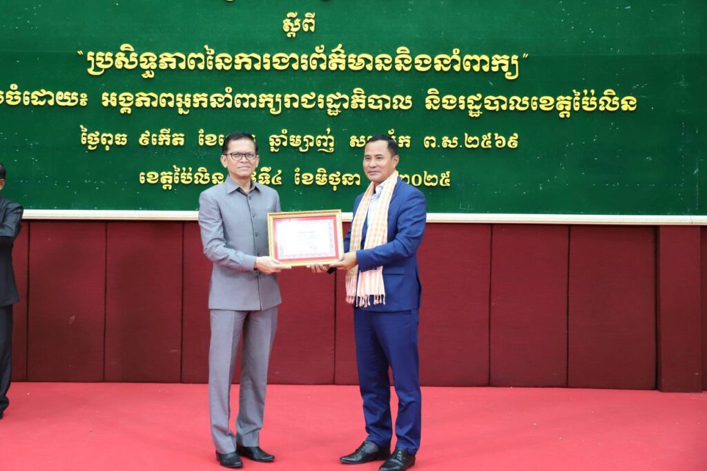 «ប្រជាពលរដ្ឋខ្មែរមានមោទនភាពនិងចូលរួមយ៉ាងសស្រាក់សស្រាំជាមួយរាជរដ្ឋាភិបាល និងជាមួយកងទ័ពដោយបង្កើតបានជាខឿនការពារជាតិយ៉ាងរឹងមាំបន្ទាប់ពីពួកគេយល់ច្បាស់អំពីគោលជំហរដ៏ម៉ឺងម៉ាត់និងចំណាត់ការដ៏ត្រឹមត្រូវរបស់រាជរដ្ឋាភិបាលក្នុងការការពារបូរណភាពទឹកដី»។ នេះជាការគូសបញ្ជាក់របស់ឯកឧត្តម ប៉ែន បូណា រដ្ឋមន្ត្រីប្រតិភូអមនាយករដ្ឋមន្ត្រី និងជាប្រធានអង្គភាពអ្នកនាំពាក្យរាជរដ្ឋាភិបាលក្នុងឱកាសអញ្ជើញជាគណៈអធិបតី និងជាវាគ្មិននៅក្នុងសិក្ខាសាលាតម្រង់ទិសស្តីពី «ប្រសិទ្ធភាពនៃការងារព័ត៌មាននិងនាំពាក្យ» នៅសាលាខេត្តប៉ៃលិន នាព្រឹកថ្ងៃទី៤ ខែមិថុនា ឆ្នាំ២០២៥។