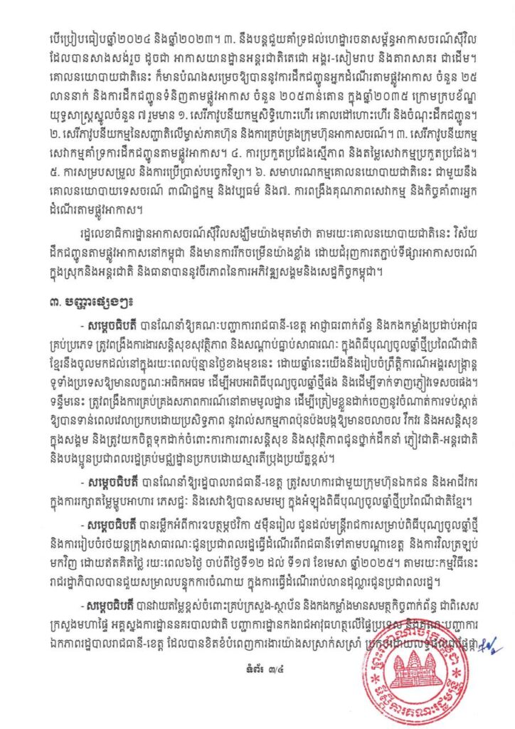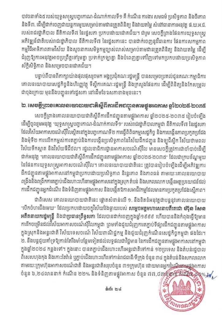 ២. សេចក្តីព្រាងគោលនយោបាយជាតិស្តីពីការដឹកជញ្ជូនតាមផ្លូវអាកាស ឆ្នាំ២០២៥-២០៣៥